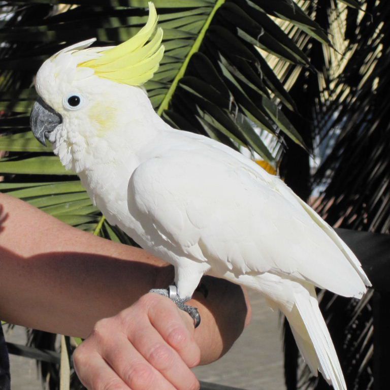 The Lesser Sulphur-Crested cockatoo is, as the name suggests, a species that looks like a small version of the Sulphur-Crested Cockatoo. These birds are entirely different species though. The scientific name of the Lesser Sulphur-Crested cockatoo species is Cacatua sulphurea.